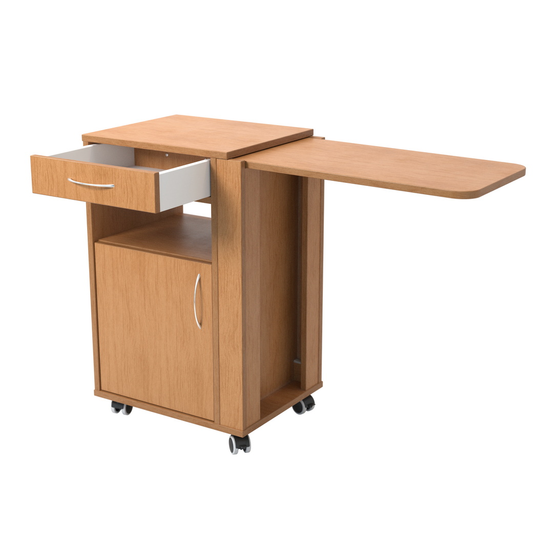 Sertarul retractabil este un detaliu foarte util, deoarece se deschide pe ambele părți. Această caracteristică oferă un avantaj important în saloanele medicale și în camerele de îngrijire, unde accesul la mobilier poate varia în funcție de poziționarea patului sau de organizarea spațiului. Posibilitatea de utilizare din ambele părți face ca noptiera să fie mai versatilă și mai ușor de folosit atât de către pacient, cât și de către personalul care îl îngrijește. În plus, accesul bilateral poate contribui la o folosire mai eficientă a produsului în camere comune sau în spații unde manevrabilitatea este importantă.