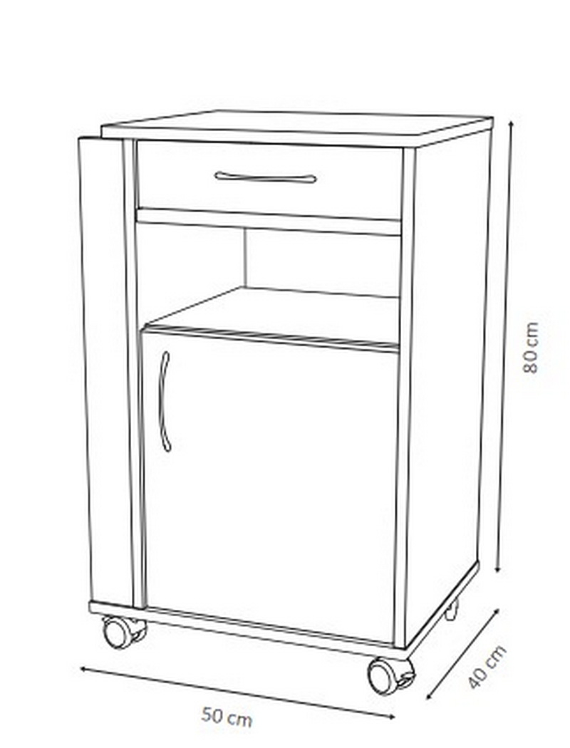 Dimensiunile de 50 x 40 x 80 cm fac din acest model o alegere echilibrată pentru spațiile medicale unde mobilierul trebuie să fie suficient de compact pentru a nu aglomera încăperea, dar și suficient de încăpător pentru a oferi funcționalitate reală. Noptiera se poate amplasa cu ușurință lângă pat, oferind acces confortabil la toate compartimentele și la măsuța laterală. Aceste proporții o recomandă atât pentru saloane medicale standard, cât și pentru camere de îngrijire la domiciliu sau spații de recuperare.